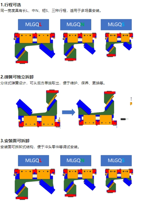 MLGQ斜楔目前已在實際生產(chǎn)中已得到應用,已為客戶解決各種反向類沖裁零件等問題。